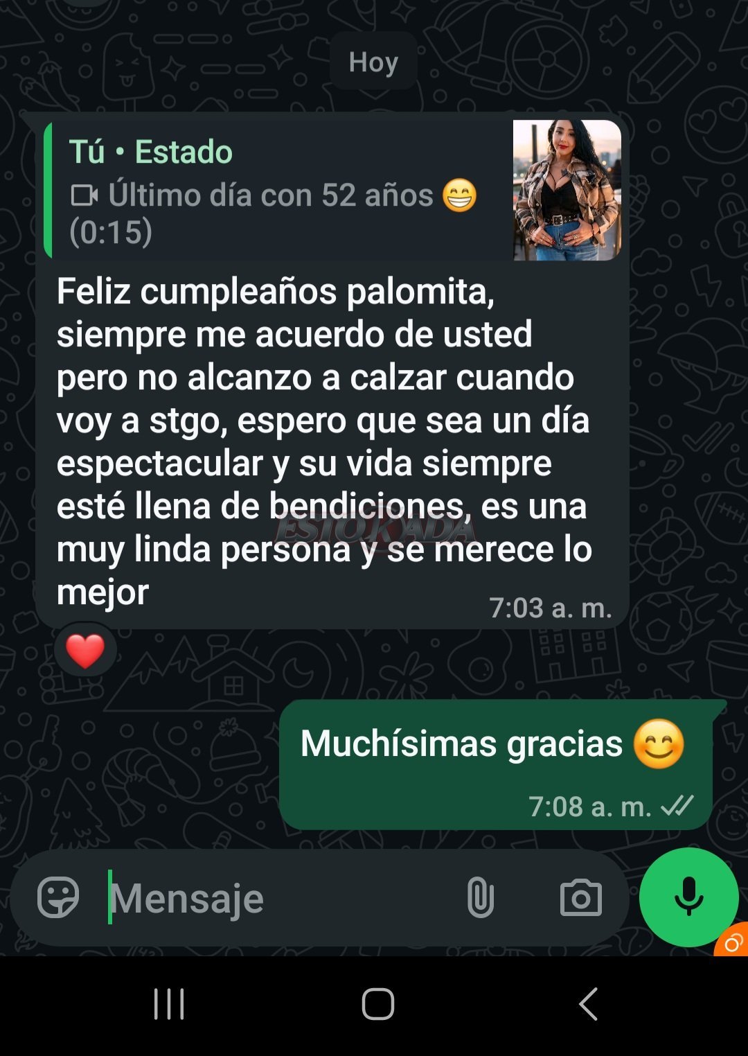 Ya son 53 🥳 Agradecida de los saludos que comenzaron a las 6:55 am ☺️ Gracias por el Cariño para la Soa Paloma! 🤗 Espero los abrazos y besos 💋 el sábado 18 (no lleven chocolate 🍫 porque hay cambio de dieta 🙏🏼 y no los podré comer) Nos vemos Pronto! 😘💋