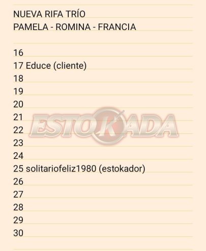 Chicos Fue todo un éxito nuestra primera rifa TRÍO Y muchos regalones quedaron con ganas de participar. Junto a mis amigas, hemos decidido complacerlos, los invitamos a participar de nuestra segunda super rifa, para ser partícipes de un osado TRÍO. Junto a : @Pamela Masajista @Romina Hot Milf. @Francia Masajista Son 40 números...a 10 mil cada número. El ganador se verá, una vez vendida la totalidad de la rifa. Por interno te contaremos de que se trata el servicio. Te garantizamos que será una experiencia inolvidable. Tendremos traguito de cortesía y cositas para picar, se respetará el tiempo de una hora de atención, el tiempo extra para que compartamos entre los 4, es cortesía de la casa. Están todos cordialmente invitados a participar de nuestra rifa : Clientes conocidos, estokadores y clientes nuevitos. Todos forman parte de ésta gran comunidad de LEK y nosotras los valoramos a cada uno de ustedes (sea estokador o cliente que solo lee y asiste a estos servicios ) todos pero todos, son muy importantes para nosotras. Los números vendidos irán siendo publicados. No pedimos reportes a cambio, tu participación no está condicionada. Reportes y comentarios positivos de nuestros servicios, es nuestra mejor carta de presentación, para que participes con toda confianza. Muchísima suerte a todos quiénes participen. ❤️❤️❤️❤️❤️❤️❤️ VID-20251026-WA0000.mp4 -