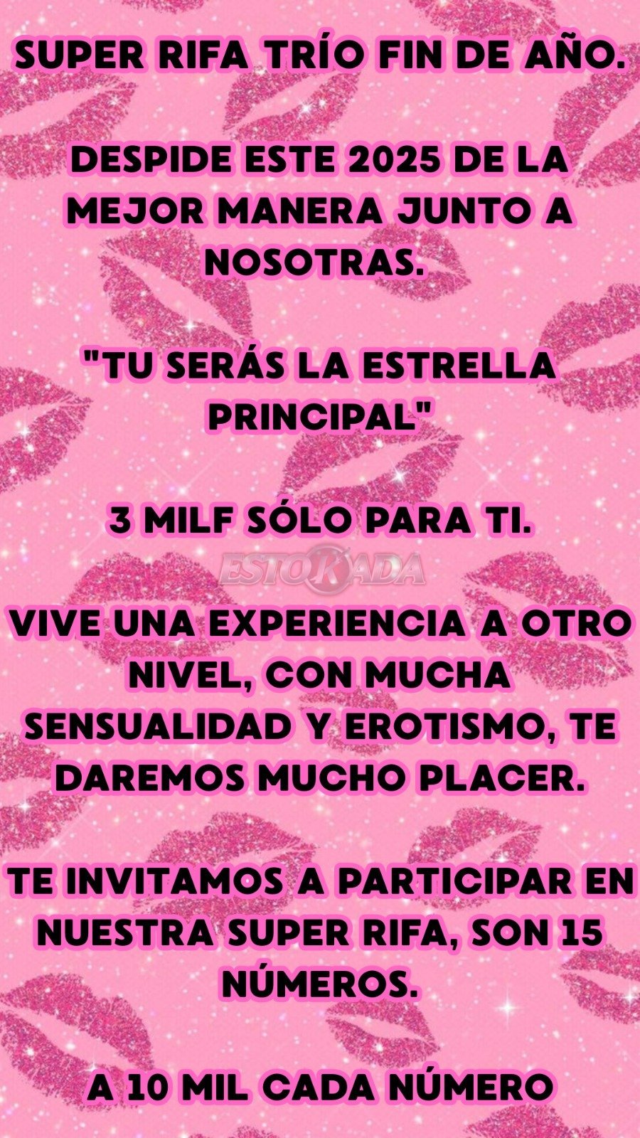 Romina Hot Milf. Publicado hoy a las 00:39:19 Publicado hoy a las 00:39:19 Éxito total nuestras rifas tríos ❤️❤️ AQUI VA NUESTRA CUARTA Y ÚLTIMA RIFA TRÍO A pedido de nuestros clientes regalones. Te quedaste con ganas de participar? Entonces estos es para ti 🔥 🔥🔥 Sensualidad,erotismo y provocación, cada una con su estilo . 15 números...valor 10 mil el número. No puedes perderte este trío está muy ric.o 😋 VID-20251216-WA0011(1).mp4 Normal, masajista profesional, tántrico, sensitivos, adicionales anal, americana y duales.