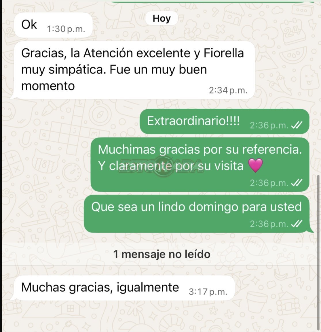 Chicas FLO Publicado hoy a las 22:25:19 Publicado hoy a las 22:25:19 Me encanta recibir este tipo de WhatsApp. Saber que al salir de alguno de nuestros departamentos, salen con la satisfacción de haber tenido un encuentro de nivel , con una chica realmente atenta y jugada . solo buscando entregar lo mejor de nosotras. Solo felicitaciones a mi Bella Fiorella.